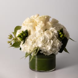 Easy to order on the website. Picture was similar to arrangement received - white hydrangeas, white orchids, cream almost yellow roses and minimal greenery including seeded eucalyptus. Delivery was timely. I am a repeat customer and would use Beards again.
